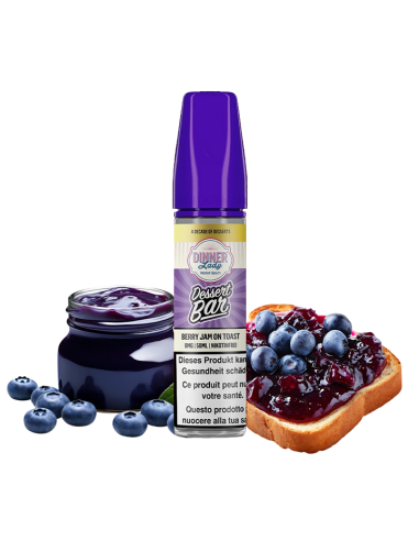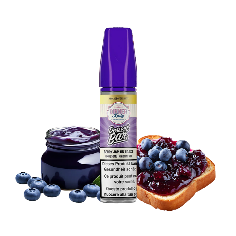 Genießen Sie die Wärme eines goldbraunen Toasts mit roter Fruchtmarmelade mit dem E-Liquid Berry Jam on Toast von Dinner Lady, einem einfachen, köstlichen und perfekt ausgewogenen All-Day-Liquid.
