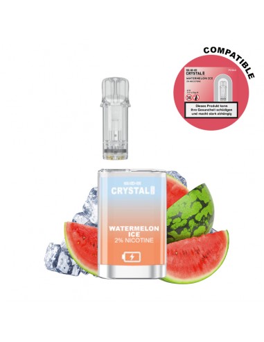 Kompatibel mit allen Crystal Pods: Strawberry Burst, Pink Lemonade, Cherry Ice, Blueberry Raspberry, Lemon Lime und Watermelon Ice.